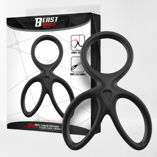 Beast Ring anillo triple para pene y testículos de silicona líquida con diseño plano 3.4 cm