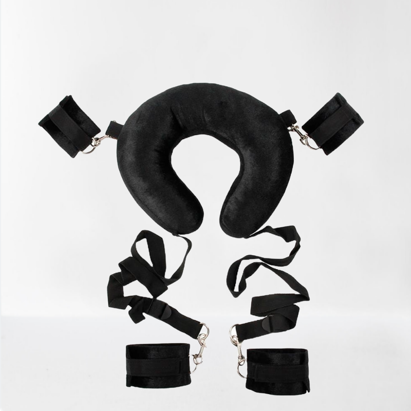 Imagina el momento: tu sumiso/a reclinado, cómodo, sin escapatoria… dispuesto a rendirse por completo. Este cojín para el cuello con esposas de muñecas y tobillos convierte la inmovilización en un ritual de placer, donde la entrega se siente tan suave como inevitable.
